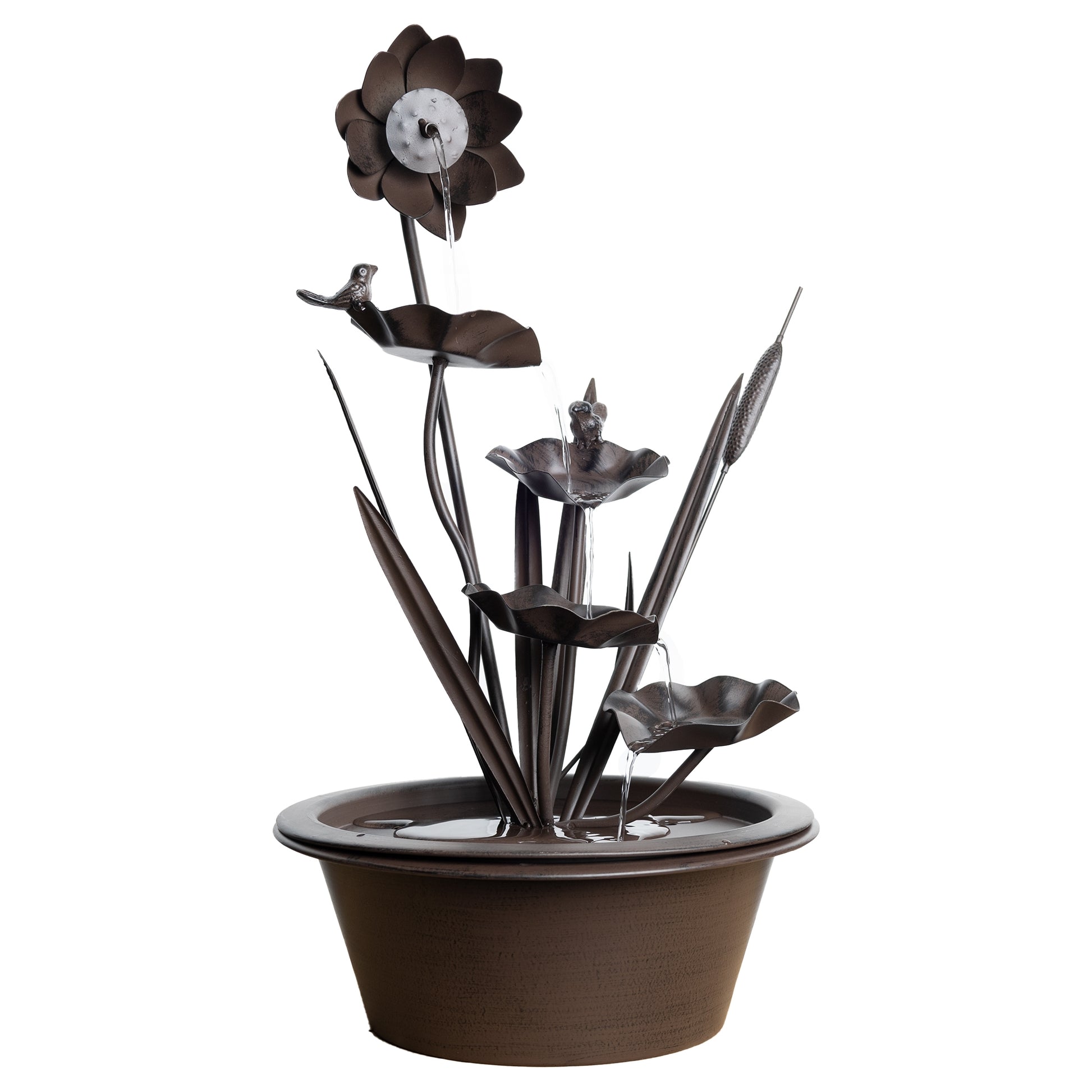 Brushed Metal Floral Fountain with Bird Accents 24"H
